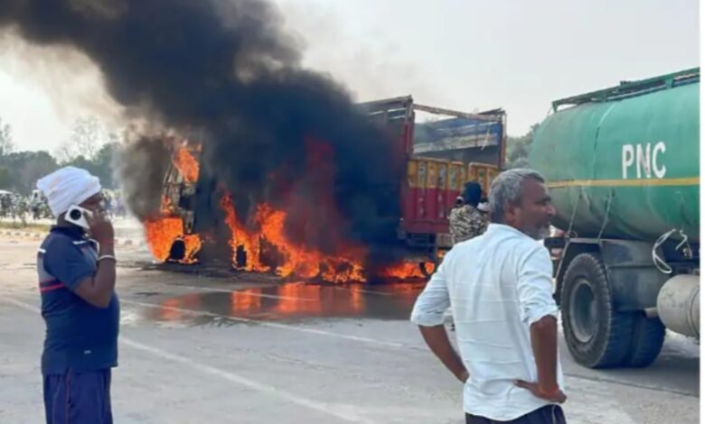 आग इतनी भयानक थी कि नेशनल हाईवे पर अफरातफरी मच गई। वहीं हादसे के बाद ट्रक चालक मौके से फरार हो गया।